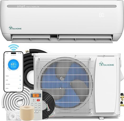 9000 BTU Mini Split Air Conditioner Heat Pump System, 19 SEER2 115V Ductless Inverter System with Wi-Fi & Alexa Compatibility, Cover Up to 750 Sq. Ft, Complete Installation Kit Included