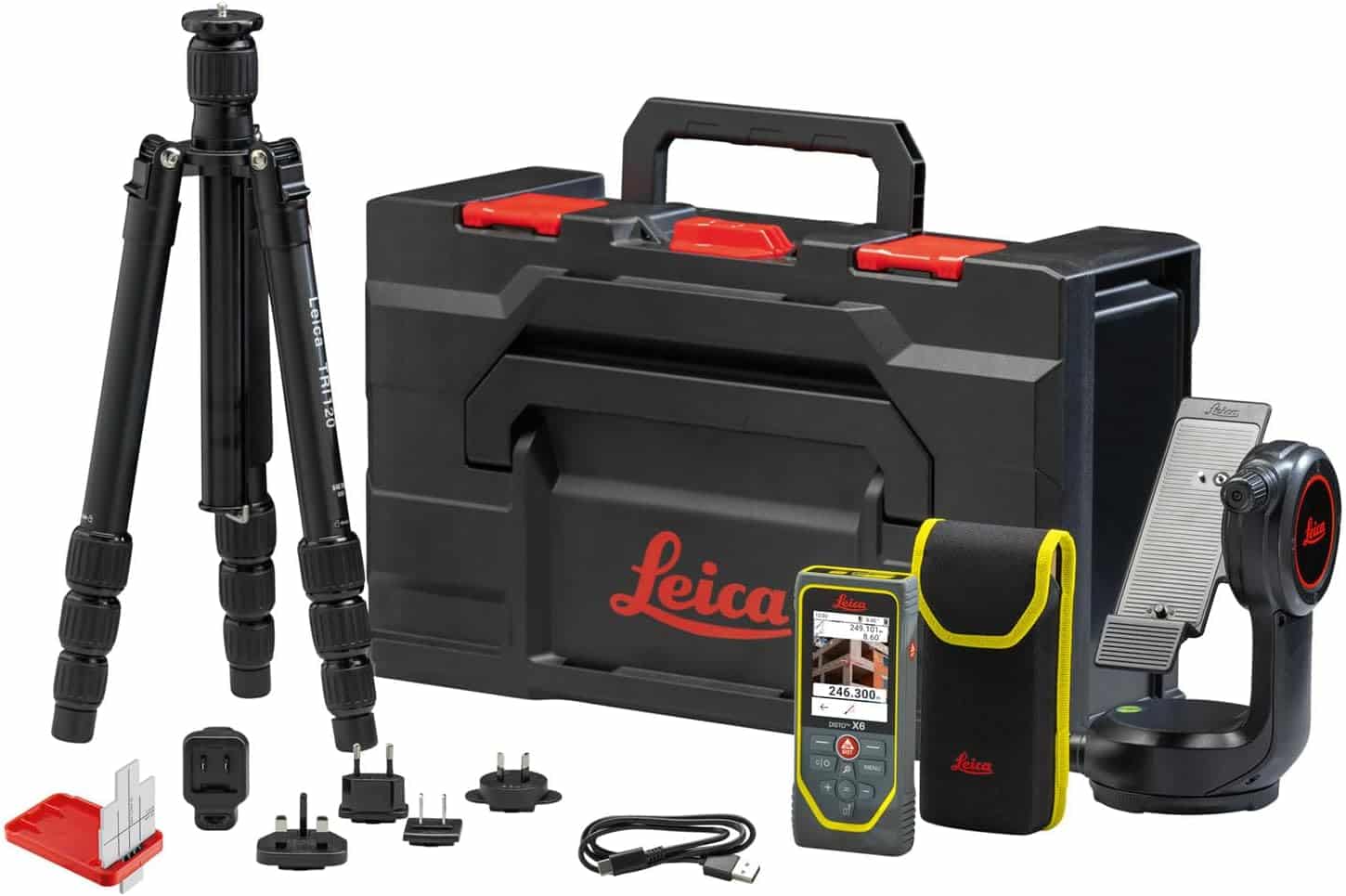 Leica Geosystems DISTO X6 Point to Point Package New, 800ft Laser Distance Measure with Bluetooth, 4X Zoom Camera, case, Tripod, DST360X Adapter
