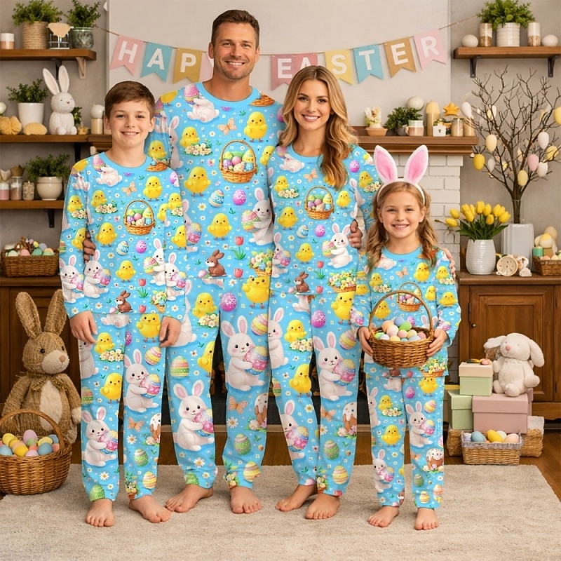Family Easter Pajamas Graphic Bunny Casual Print Blue Long Sleeve Vacation Matching Outfits 2026 – €24.99