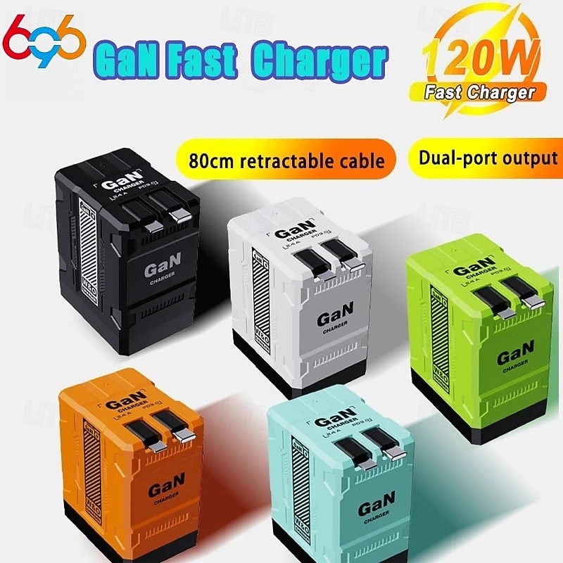 GAN Ultra Fast Charger 120W PD3.0 Type C Lighting Dual-port O utput Retractable Cable Mobile Phone Laptop Quick Charge 2026 – €22.99