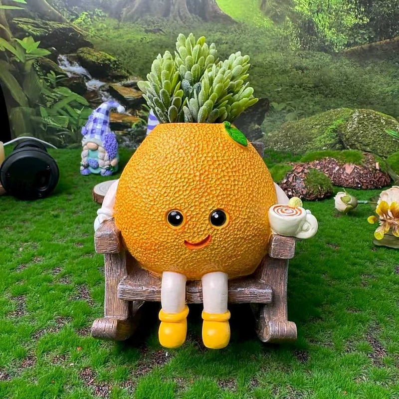 Grapefruit Rocking Chair Resin Pot, Succulent Plant Hanger and Versatile Home, Office, Garden, Foyer, or Courtyard Decor, Art Deco Style Hanging Sculp