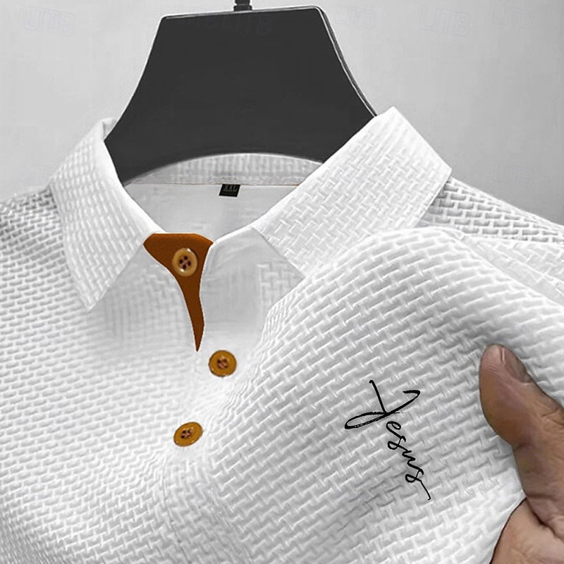 Men’s Golf Shirt Golf Polos Shirts Casual Work Lapel Short Sleeve Basic Modern Cross Jacquard Buttons Summer Spring Regular Fit Blue Black White Navy