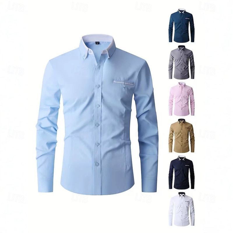 DisclosureMen’s Shirt Dress Shirt Button Down Shirt Solid Color Outdoor Business Blue Black White Pink Long Sleeve Turndown Summer Spring Clothing Apparel Butto