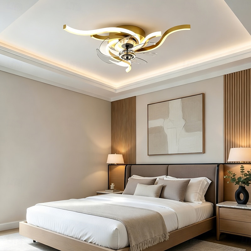 Modern Ceiling Fan with Lights, Low Profile Ceiling Fans with Remote Control and APP Control, 6 Speed Reversible Blades, Stepless Dimmable LED Ceiling