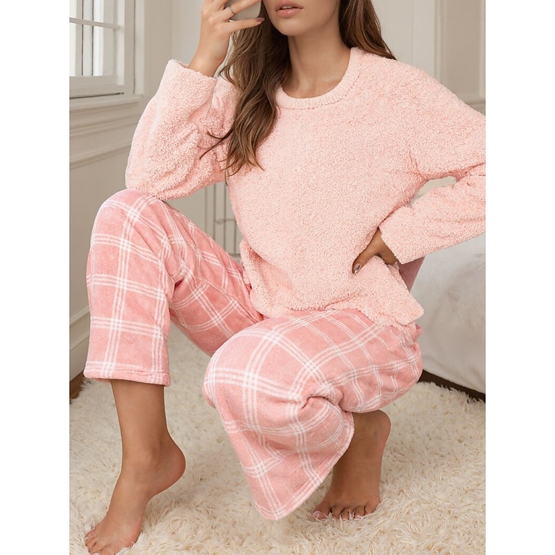 DisclosureWomen’s Pajama Set Casual Comfort Grid / Plaid Elastic Waist T Shirt Pant Home Daily Long Sleeve Crew Neck Pink Spring Fall Winter Loose Fit 2026 – €3